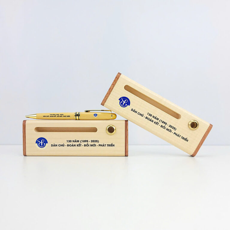 • 01 Hộp đựng bút bằng gỗ in logo
