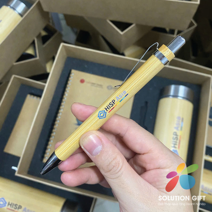 Bộ Giftset Sổ Tay Bình Tre Giữ Nhiệt Bút Tre in Logo_BQTSG014
